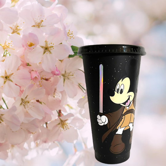 24oz Black Glitter Cold Cup with Mickey Luke Skywalker Design