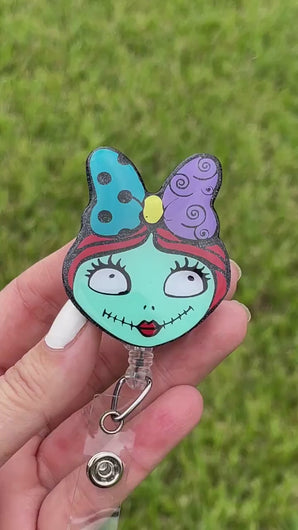 "Introducing our Sally badge reel from Tim Burton's classic movie, "The Nightmare Before Christmas". This badge reel features a vibrant image of Sally, the patchwork girl, The durable retractable reel allows you to easily swipe your ID card, and the sturdy clip on the back ensures it stays securely in place. Perfect for fans of the movie and for adding a touch of Halloween Town to your everyday attire."