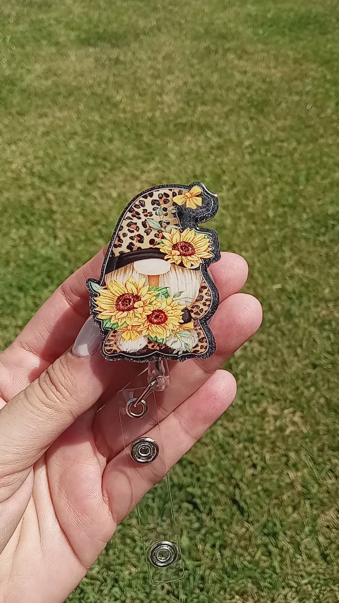 The Leopard Sunflower Gnome Design Badge Reel is a cute and functional accessory for those who need to wear an ID badge at work or for events. Featuring a gnome in an Leopard-themed outfit holding sunflowers, this badge reel adds a touch of festive cheer to any outfit. The reel is attached to a clip that can be attached to a shirt, lanyard, or bag, making it easy to access your ID whenever you need it.