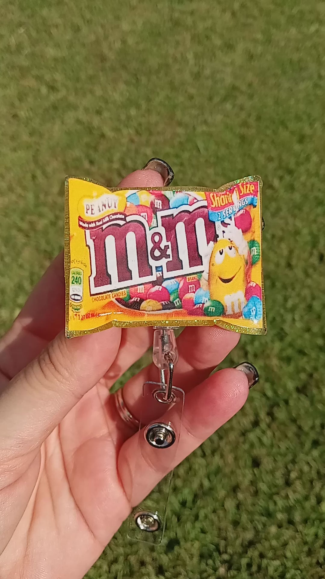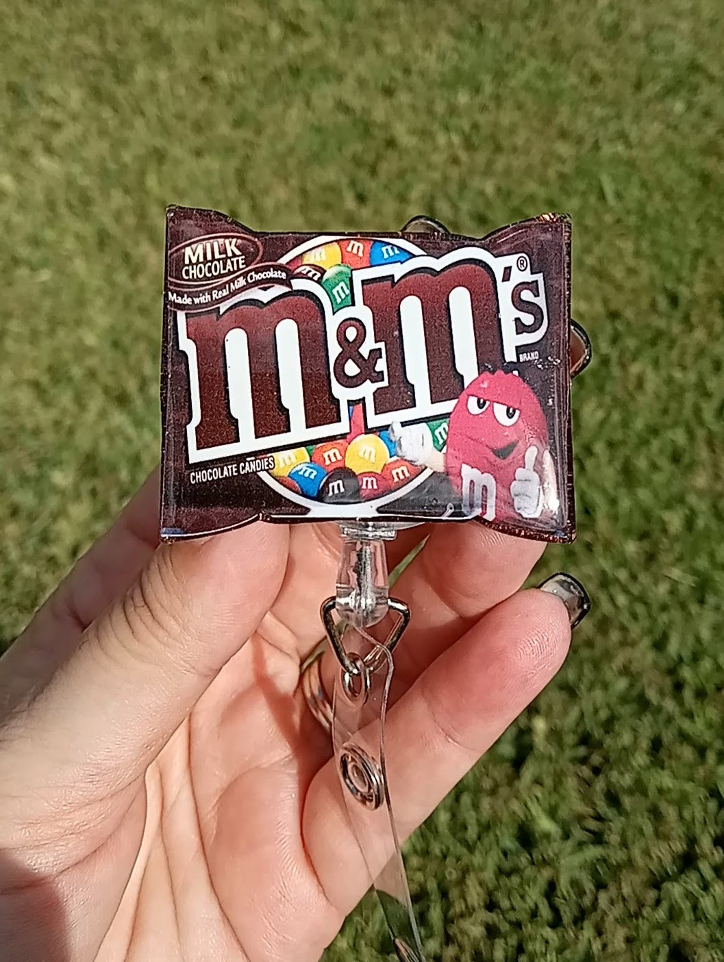 Introducing our delectably delightful Badge Reel with Mini M&M Chocolate Candy Bars!