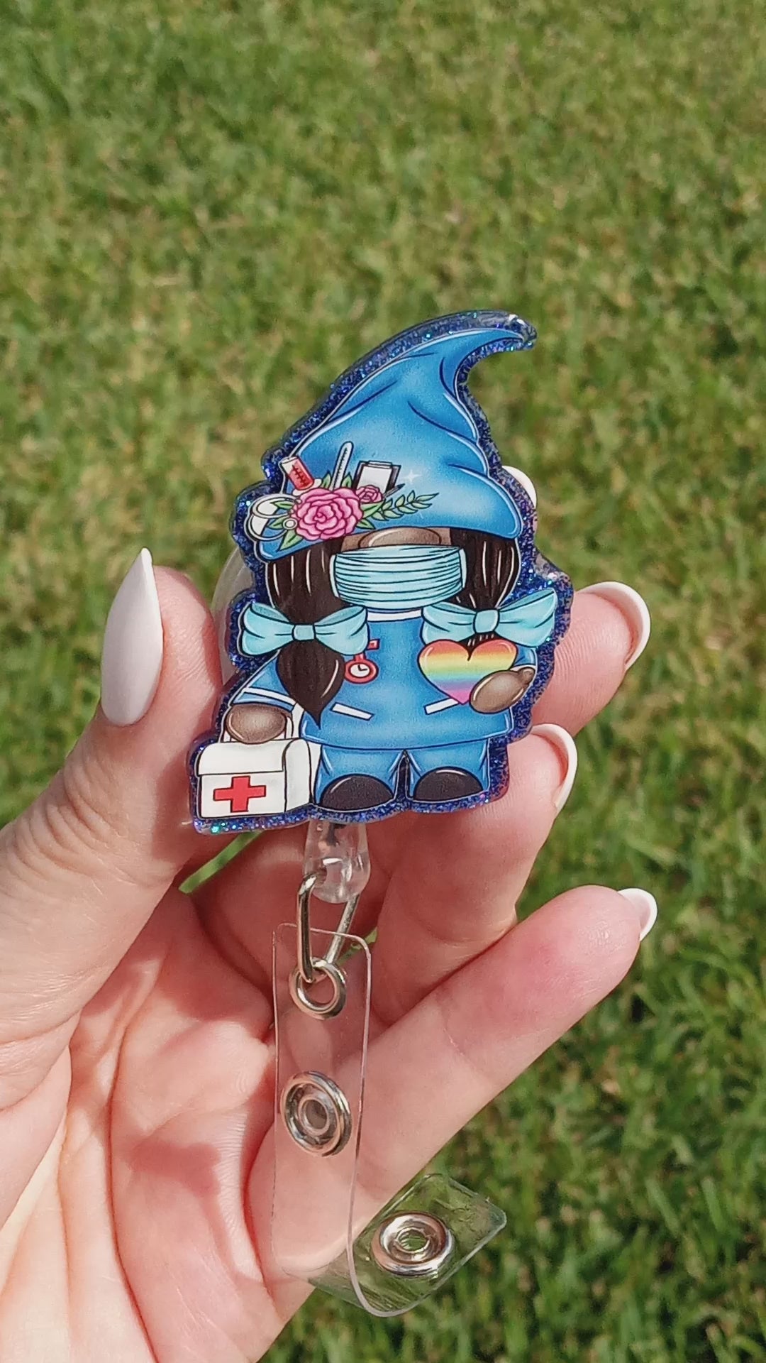 "Get ready to spread some joy and laughter with our Gnome Nurse Badge Reel! This cute and quirky accessory features a gnome dressed as a nurse, complete with a hat and stethoscope. The badge reel securely holds your ID badge, making it easy to display at work or school.