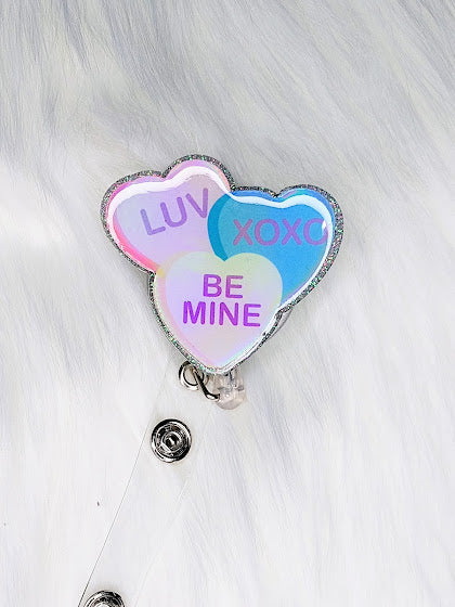 Perfect for nurses, teachers, office workers, or anyone who wears a badge or ID, the Conversation Hearts Badge Reel is a fun and functional accessory that is sure to brighten up your day. Whether you're at work or out and about, this badge reel is a must-have for anyone who loves a touch of sweetness in their daily routine!