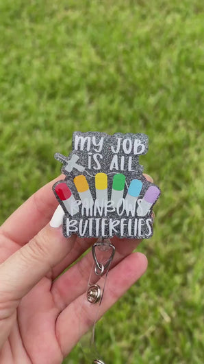 Rainbows & Butterflies The Phlebotomist Badge Reel is the perfect accessory for healthcare professionals in the laboratory field. This durable and compact reel features an image of blood draw tubes, making it an ideal way to display your profession with pride. The retractable cord allows you to easily swipe your ID card or badge, while the strong clip keeps it securely attached to your uniform. Show your dedication to the field of phlebotomy with this functional and stylish badge reel."